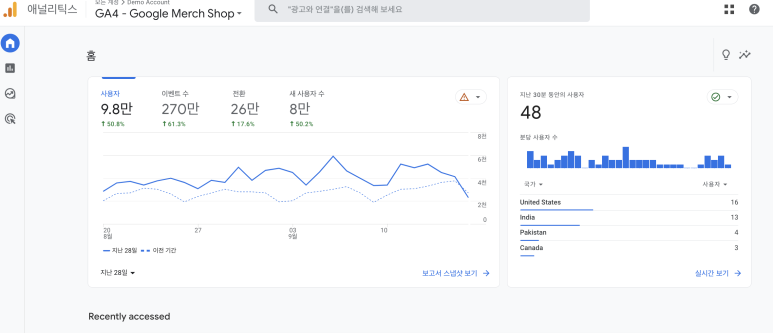 2.보고서 : GA에서 자주 볼 수 있는 데이터를 기본적으로 제공함