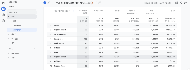 - 만약 사용자가 사이트에 들어가 빠른 시간안에 나오고 아무것도 하지 않고 나온다면 세션 1 / 참여세션은 0 이 된다. (잘못들어간 사용자도 있을것이기 때문에 이는 데이터로 치지 않기 위함.)