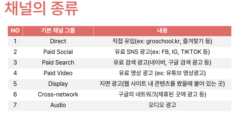 이 채널들을 통해 어디로 들어왔는지 체크 할 수 있다.